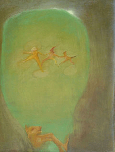 The Goatman series was inspired by the artist's reflections on the Icelandic countryside and from the "EDDA", or tales of the Viking gods by Snorri Sturluson. The "Edda" served as a guidepost to understanding the natural mysteries and unpredictability of life in Scandinavia during the 13th century. The paintings are a tribute to the Icelandic landscape and a parody of the characters depicted in those fables.