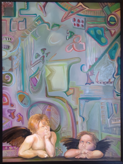 "Raphael's Cherubs Pondering The Abstract", 36x48, oil,"
